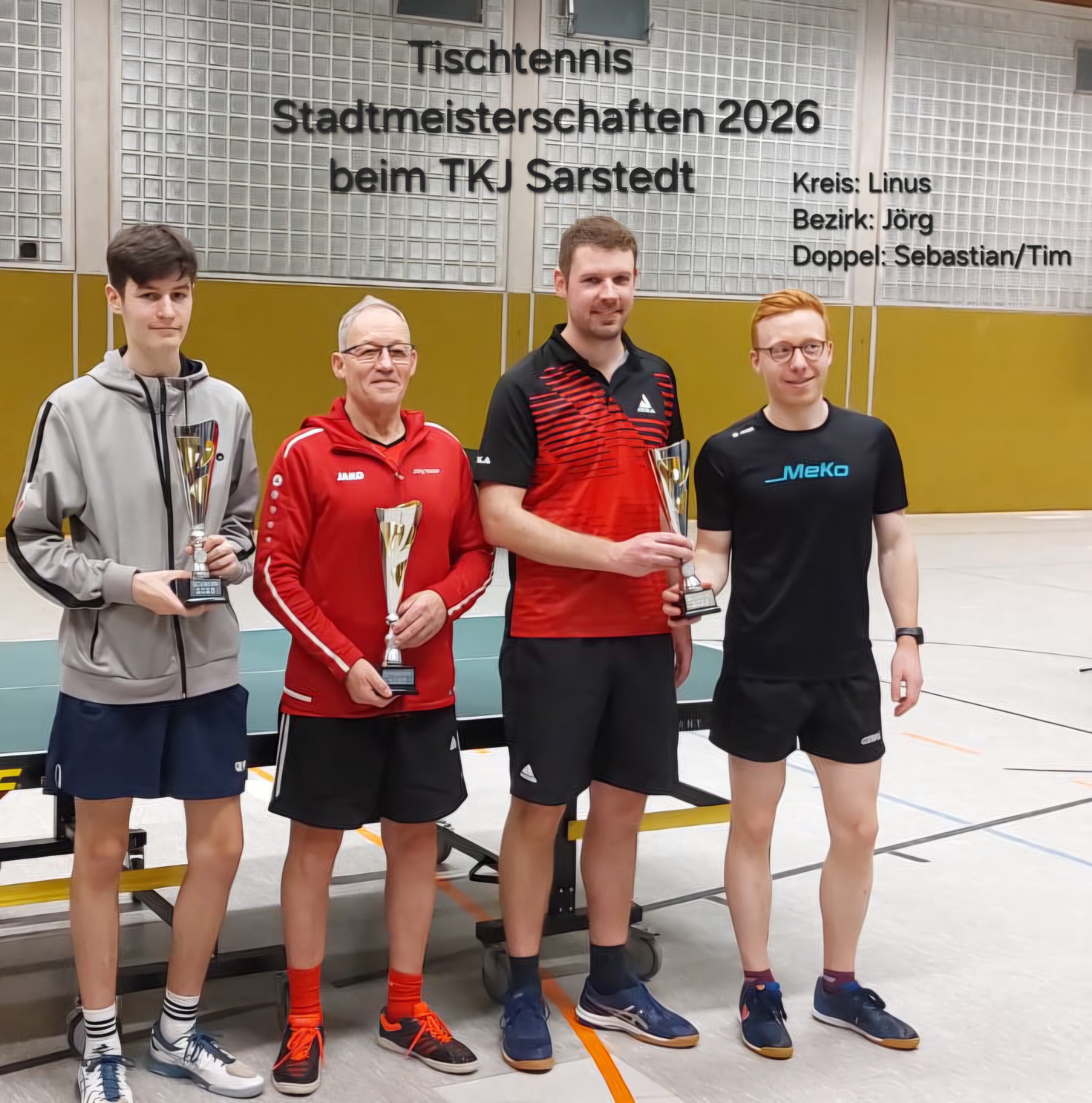 Insgesamt 41 Spieler/-innen vom TKJ Sarstedt, TSV Heisede und dem FSV Sarstedt meldeten sich für die Sarstedter Tischtennis Stadtmeisterschaften 2026 an.