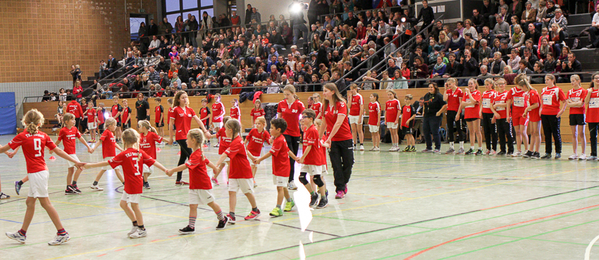 An der großen  TKJ Sportschau in der unser Verein viele Sportarten präsentiert nahmen ca. 50 Handballer/innen teil, die weiblichen sowie männlichen Minis und E-Jugend Mannschaften sowie die weibliche C-Jugend zeigten in ausverkaufter Halle wie so ein Handballtraining abläuft und wie viel Spaß die Kinder beim Training entwickeln.
